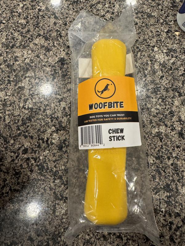 A big hit! The dogs loved this new chew toy. The WoofBite Power Stick chew toy is incredibly durable, and shows very little signs of wear and tear after two weeks