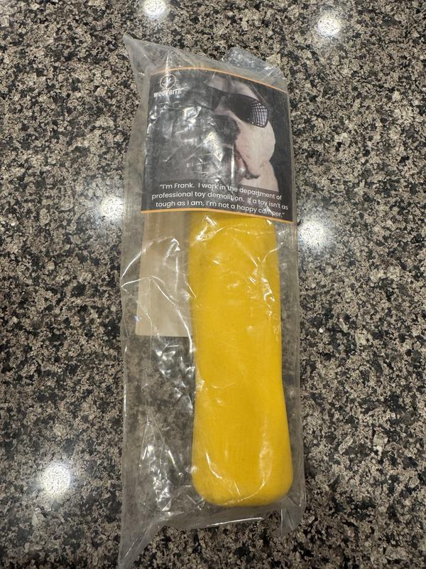 - The unique, engaging natural rubber and bright yellow color—highly visible to dogs—make WoofBite toys irresistible to dogs.