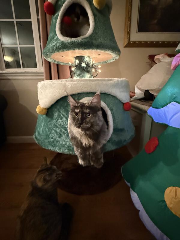 I'd given up on having a Christmas tree but saw this and tried it. Fantastic! The 3 cats love it (and my son's 18 lb cat loves it when he visits--he fits in the lower tier). It looks festive and I love that it is safe for everyone!!