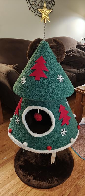 - This unique cat condo is Christmas tree-shaped, adding a festive touch to your home decorations.