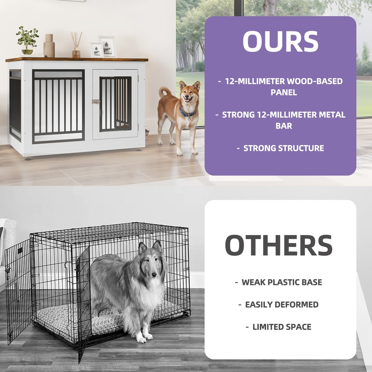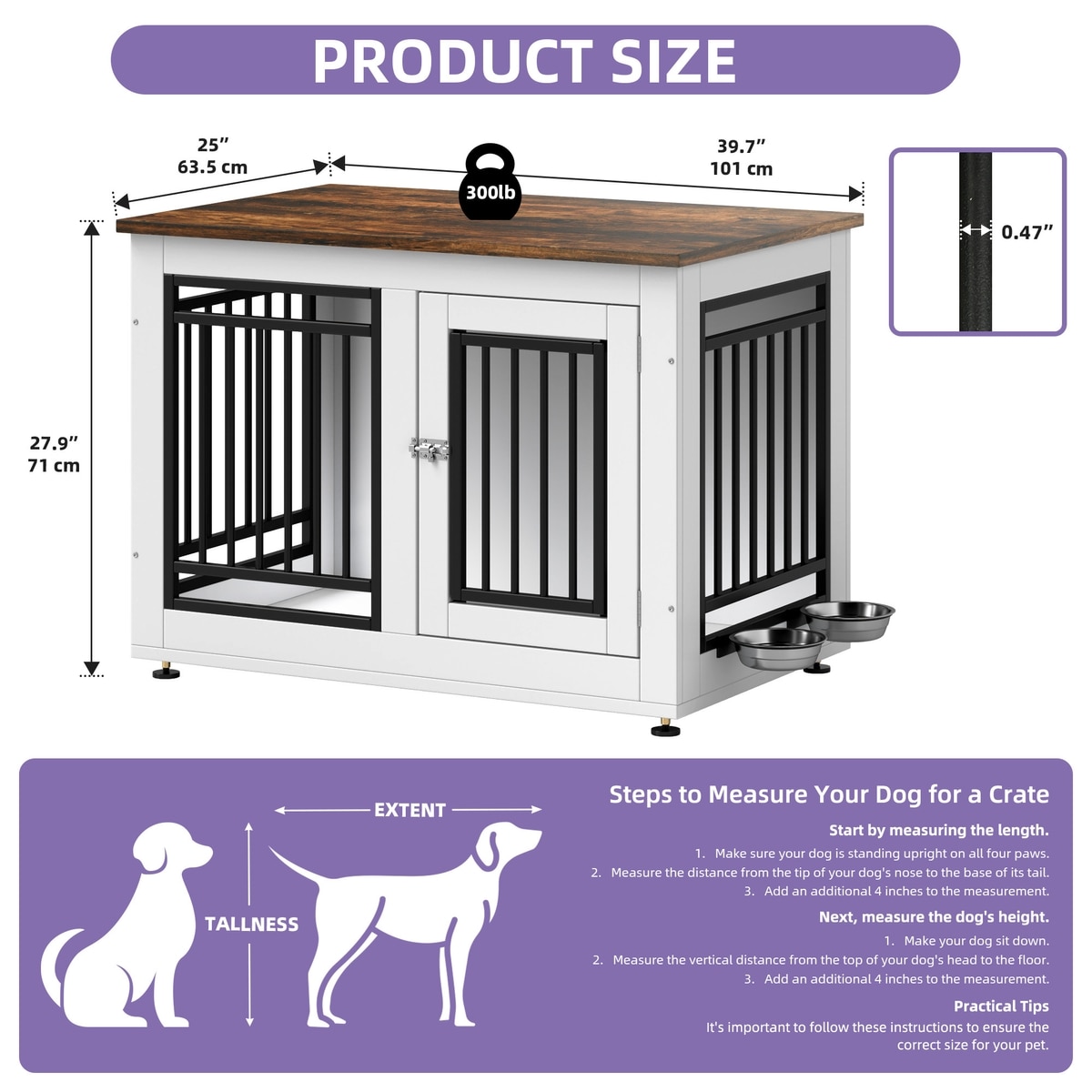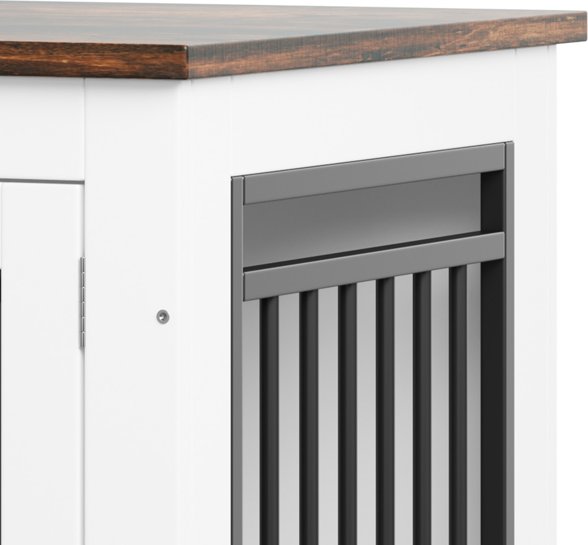 Wooflex Furniture Style Dog Crate with Adjustable Feet & Removable Bowls, White, 40 inch