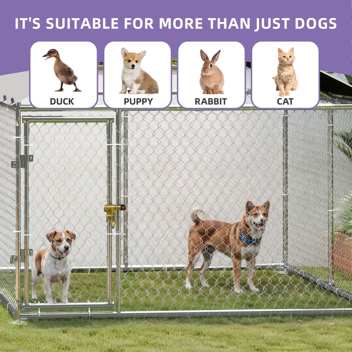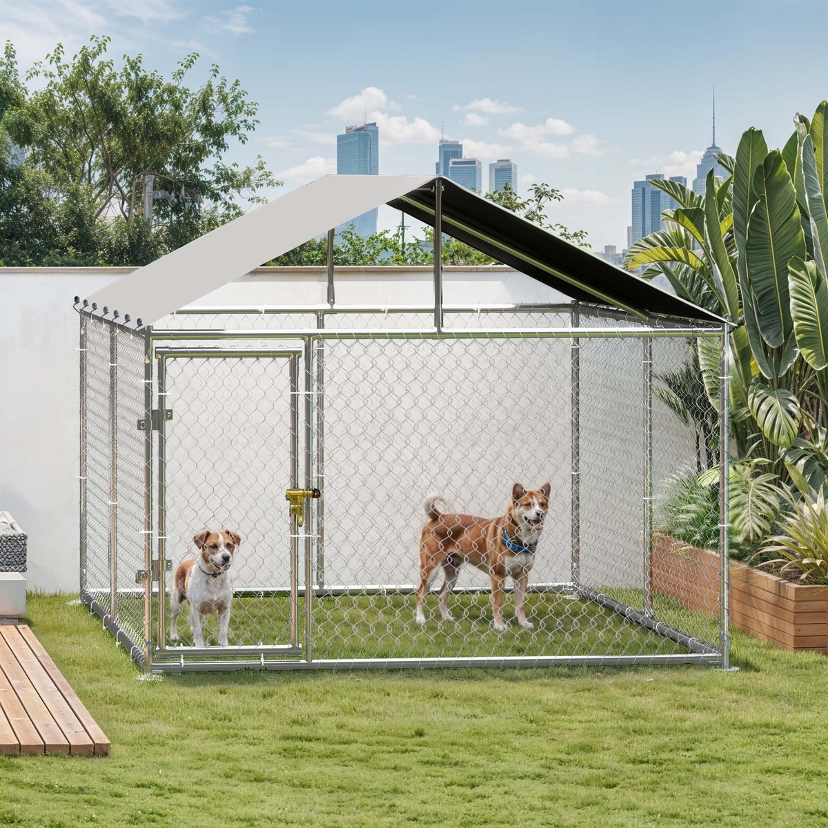 Wooflex Heavy Duty Outdoor Dog Kennel with Roof & Metal Gate, 10 x 10-ft