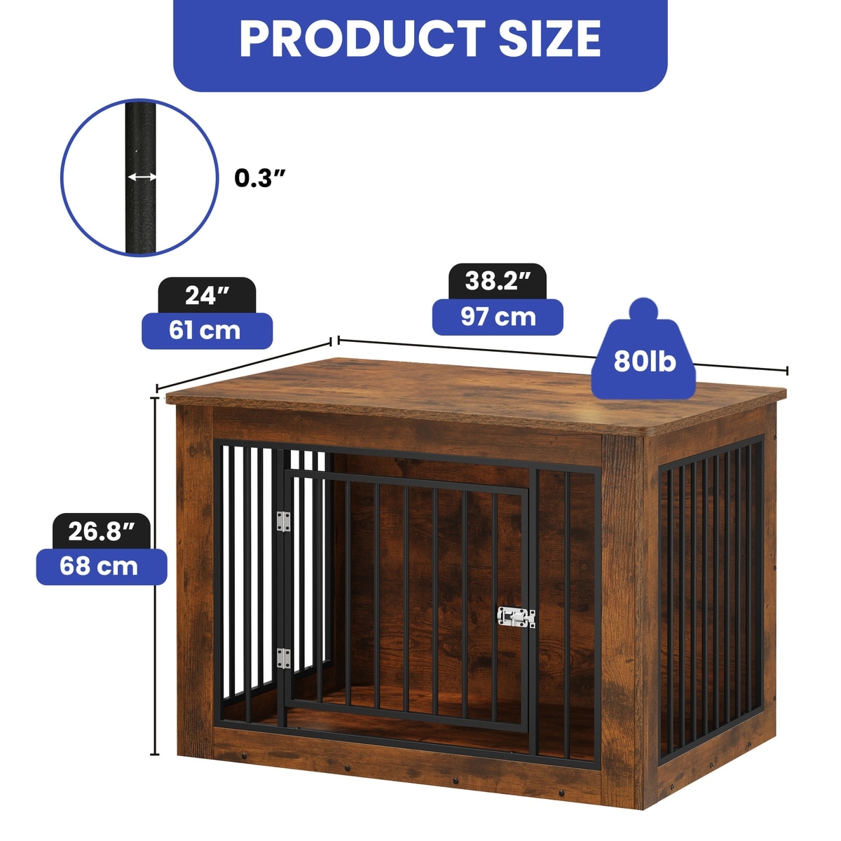 Wooflex Wooden Furniture Dog Crate, Rustic Brown, 38 inch