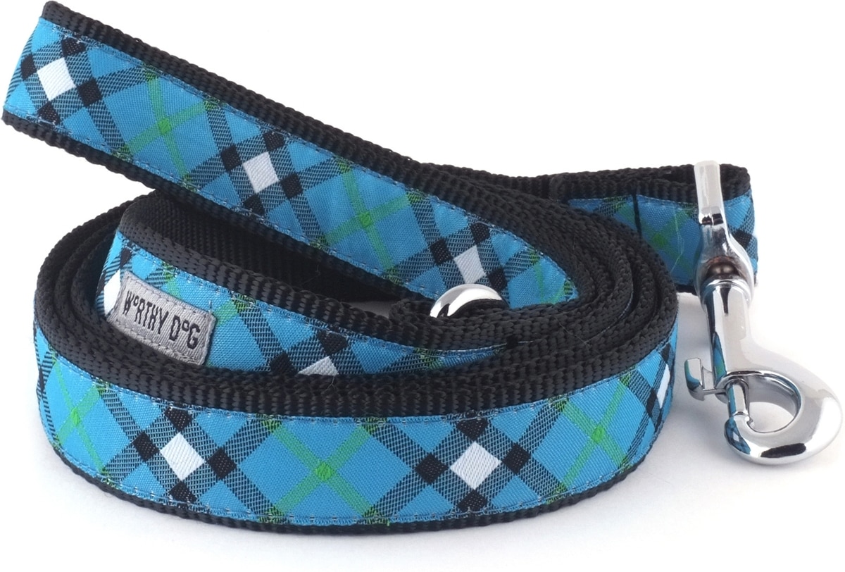 The Worthy Dog Bias Plaid Dog Leash, Blue, Large: 5-ft long, 1-in wide