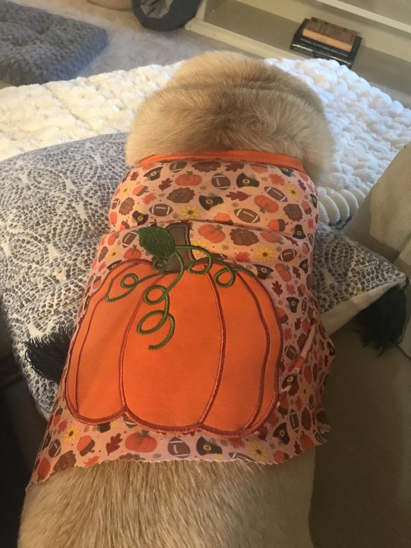 This fit perfectly on my bernedoodle. She looks adorable and ready for Thanksgiving!