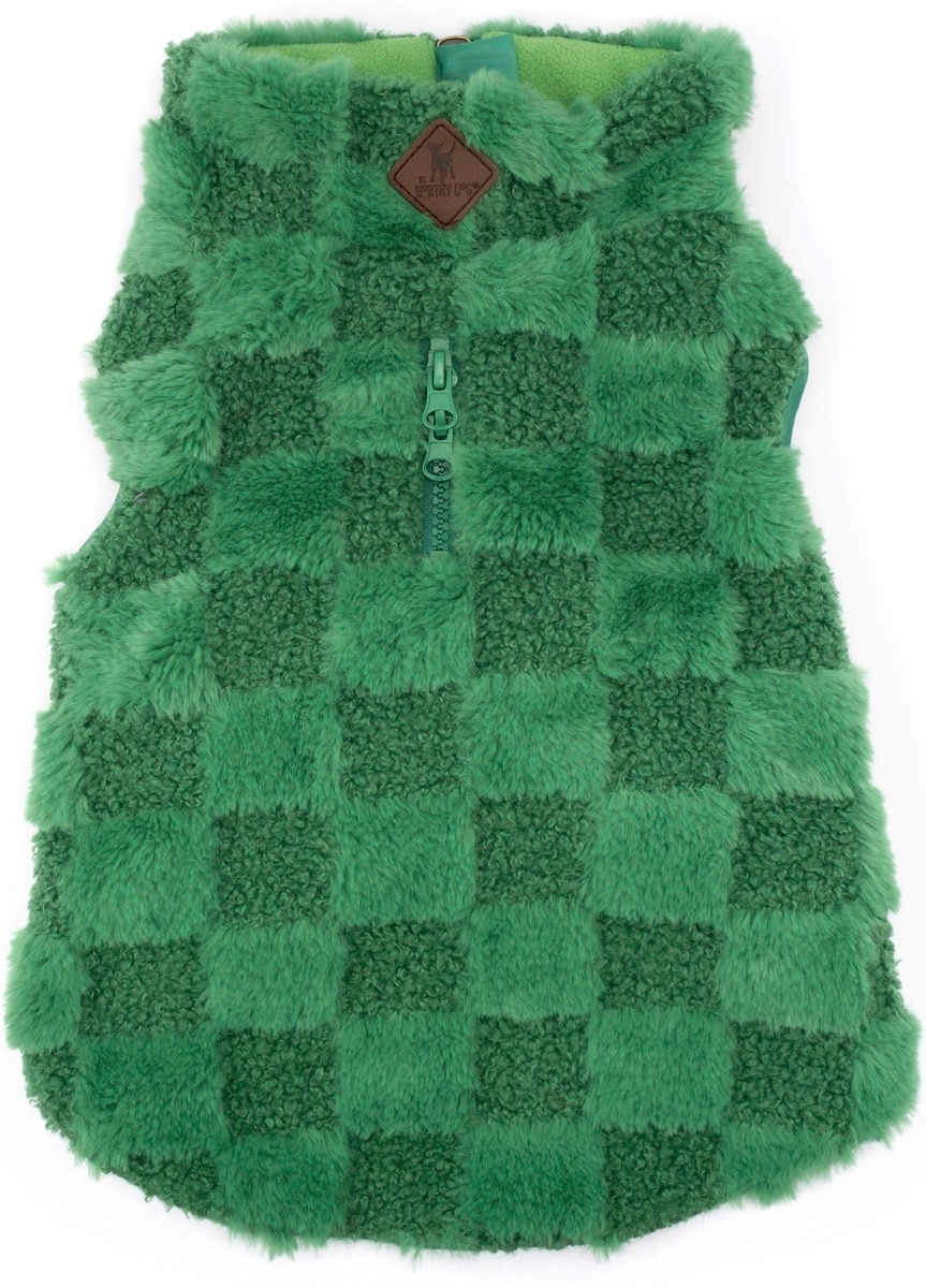 The Worthy Dog Faux Fur Check 1/2 Zip Pullover Dog Coat, Green, XX-Large