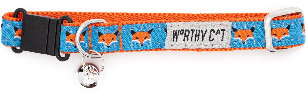 The Worthy Dog Foxy Cat Collar, Blue 9 to 11-in neck, 1/2-in wide