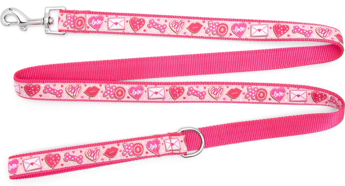 The Worthy Dog Love & Kisses Nylon Dog Lead, Pink, Large: 5-ft long, 1-in wide