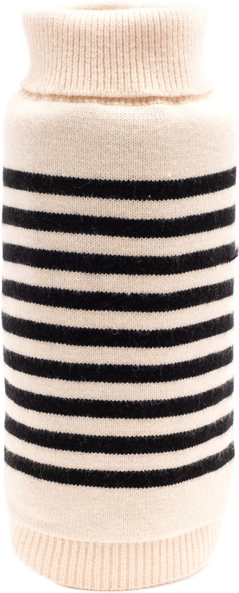 The Worthy Dog Stripe Turtleneck Dog Sweater, Cream/Black, Medium