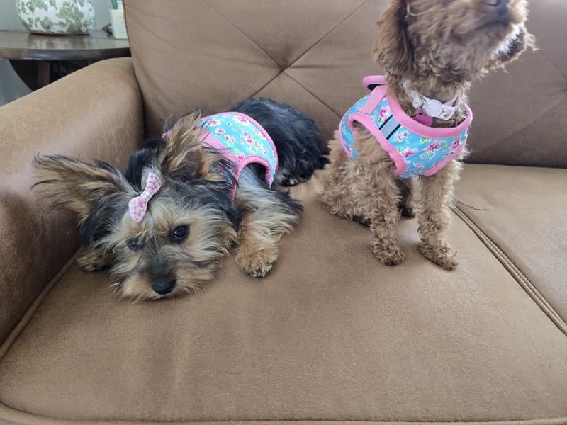Our new puppy is small so we love the size selection and the color is perfect for our little girl. We have had a lot of harness over the years. Easy to put on,