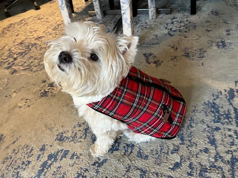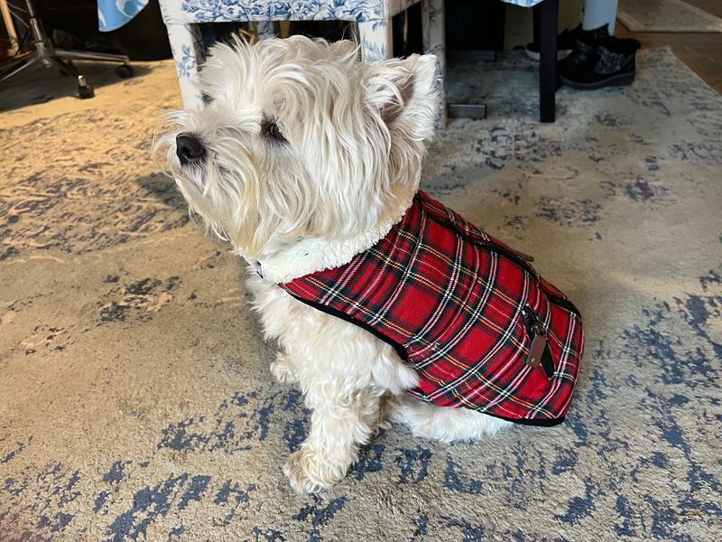 The Windsor Tartan Jacket is simply outstanding. The workmanship, material and the fit and design are meticulous. Easy on and easy off, keeps Maple warm and happy