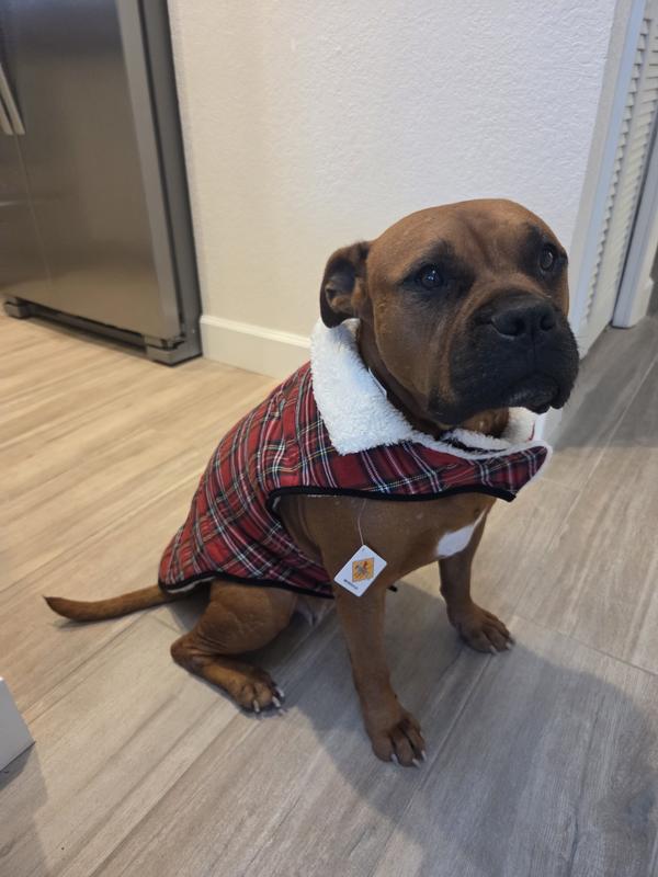 As soon as I saw this Beautiful Tartan Coat, I had to get it for my Westie-Girl. Although she has two Tartan Kilts, she did not have a Tartan coat. For warmth, it has cream-colored plush lining with a plush collar. I see it says X-Large in the automatic header but Remy's coat is actually a size Medium which is her usual size and it fits her perfectly. She has been getting lots of compliments. Great quality! Thank you, Chewy!