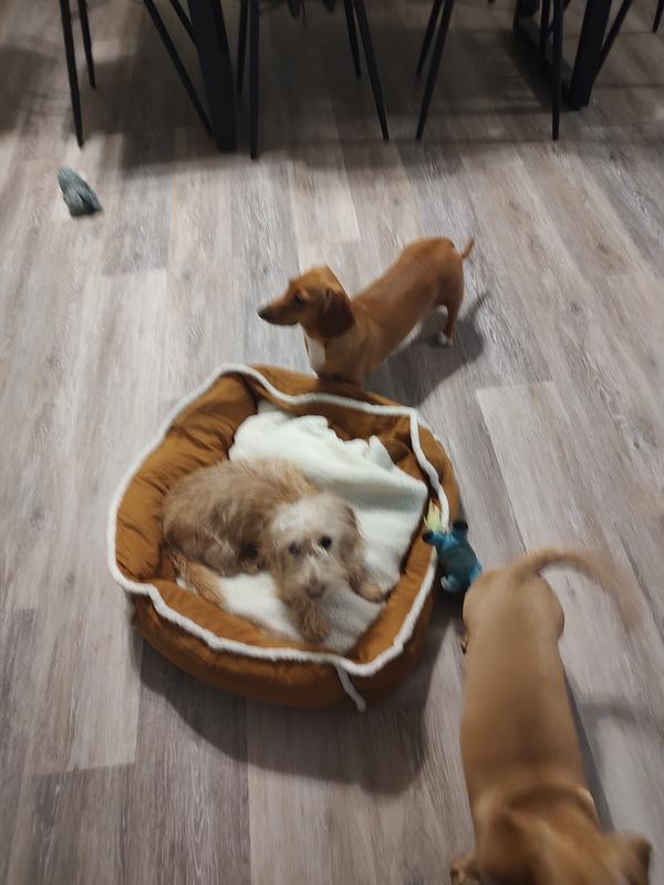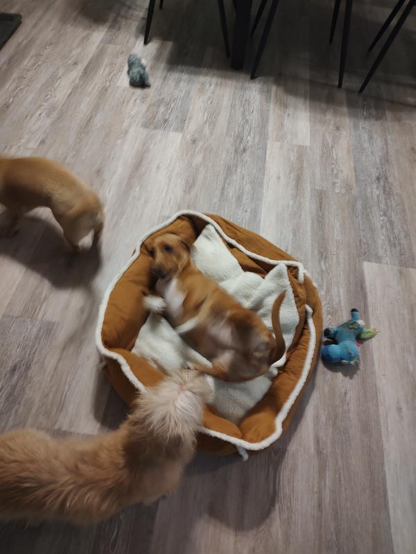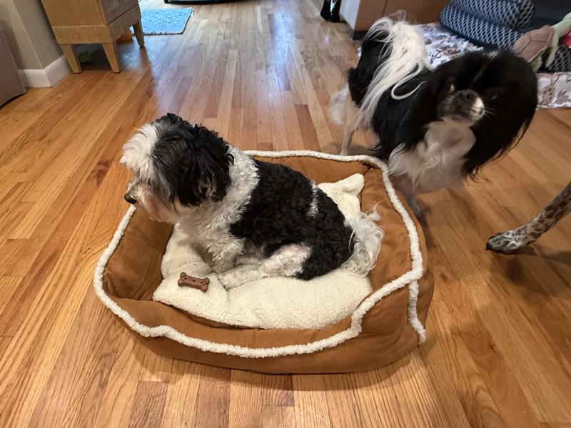 My pug absolutely loves this bed. It’s soft, supportive, and clearly super comfortable because the snoring starts within minutes! I’ve never heard a dog snore louder, and now she does it from the comfort of her new favorite spot. The size is just right for her to curl up or sprawl out, and the raised edges make her feel snug and secure. I also love that the cover is easy to remove and wash, which makes life a lot easier with a little dog who sheds. No complaints at all. This bed has become her cozy little throne. Highly recommend—just be prepared for some very content pug snores!