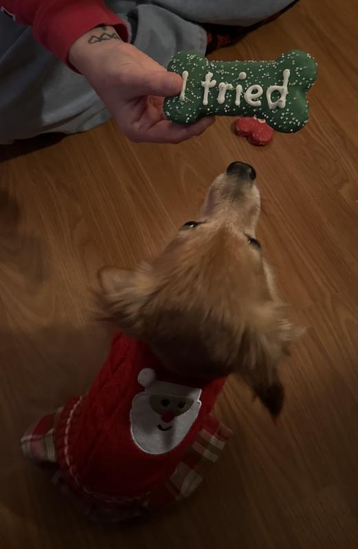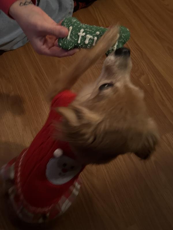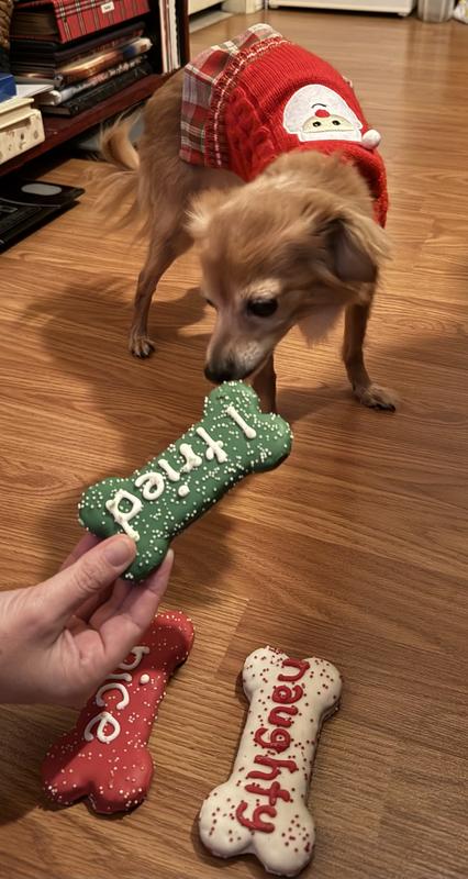 - DealWufers Santa & Reindeer Christmas Bones Cinnamon, Apple & Honey Cookie Dog Treats, 3.46-oz box, 4 count$6.98 Chewy Price$7.49 List Price$6.63 Autoship PricePromo, Spend $100, Get $30 eGift Card with code NEWYEAR