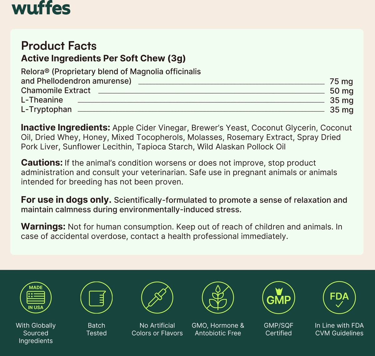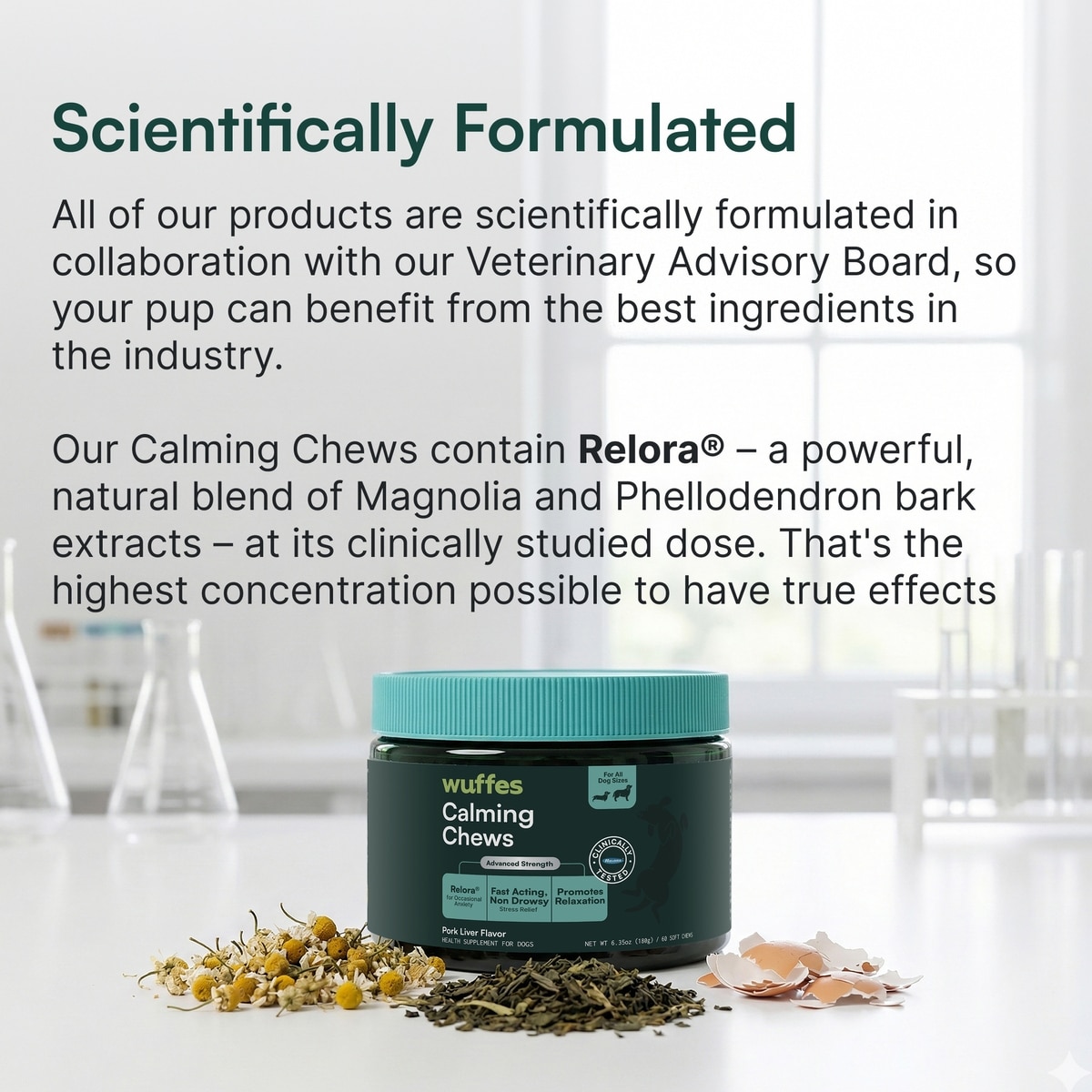 Each Wuffes product is scientifically formulated to include high levels of active ingredients, developed in collaboration with a Veterinary Advisory Board.