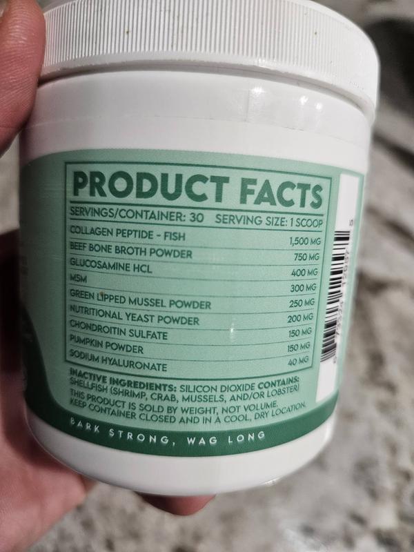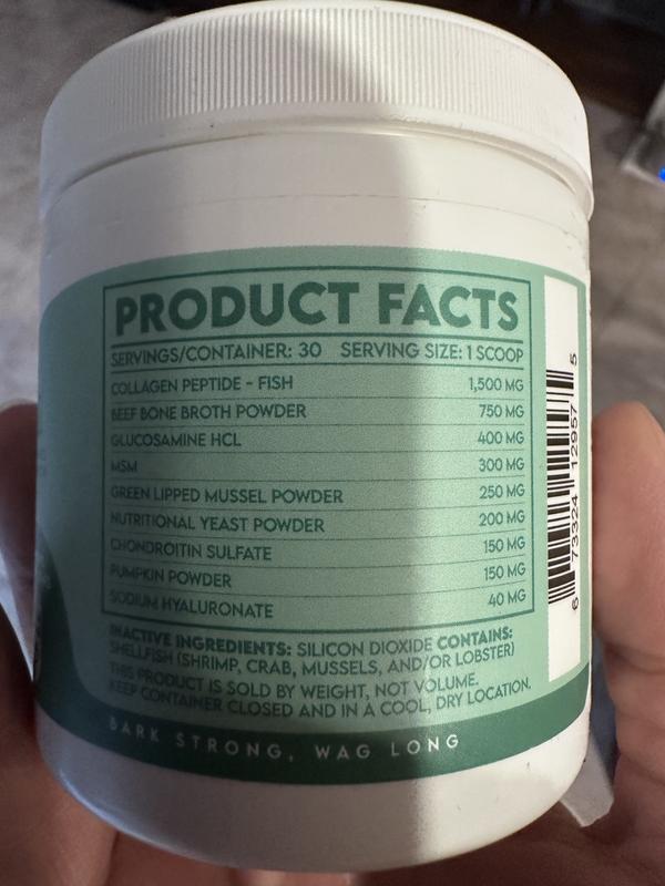 My dog tends to become picky about his food. Since using the Wuffwell Skin & Coat Supplement, he'll eat his food when this is sprinkled on it. He seems to enjoy the taste, and has stopped having dry skin. I have hope that the collagen in this product will help his joints.