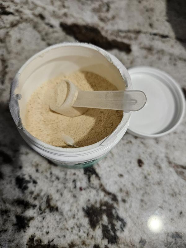 Was extremely difficult to open as lid seemed to be crooked. Used on 7yr old Great Dane with mild arthritis for 4 days. Large amount needed per dose (1 1/2 scoops) Disappointed that since use dog has had an upset stomach daily after ingesting. Will be discontinuing use. Haven’t seen any other effects, but don’t expect to with this short period of time. Product seems to have a pleasant aroma as our cats were very interested in it.