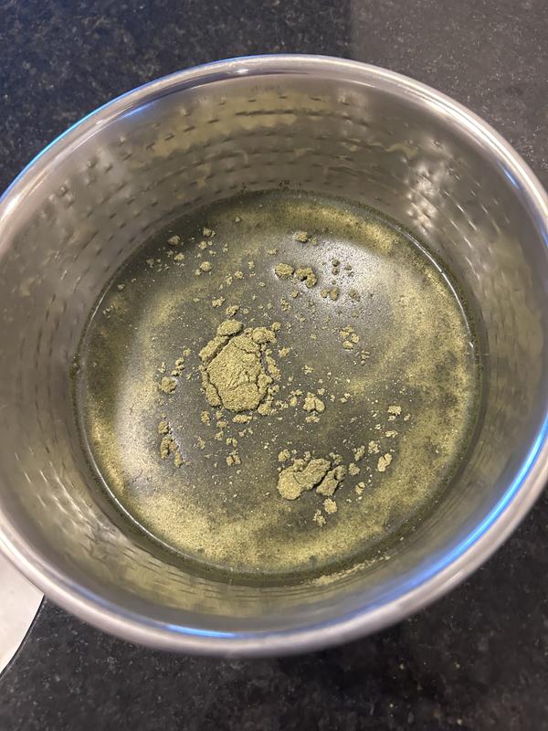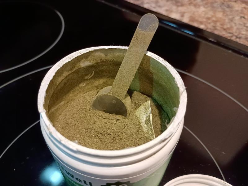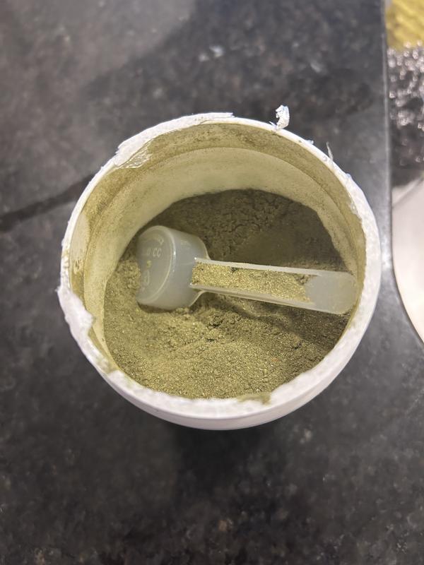 Super green, for sure! My crew didn't mind the overly green smell. 1 scoop over food seems like a bit much, if I fed the recommended dose (1 1/2 scoops) I'm not