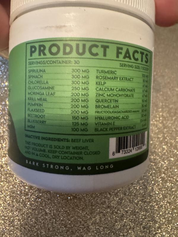 - Provides a daily dose of supergreens, including spirulina, chlorella, spinach, and moringa, to promote your pup’s energy, immunity, and vitality.