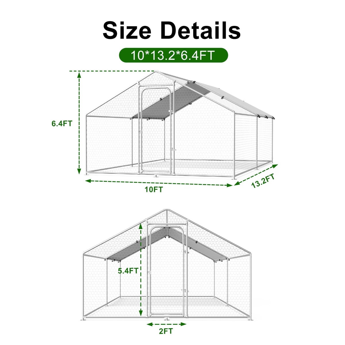 - Sturdy PVC-coated hexagonal wire mesh walls deter predators and allow for proper air circulation.