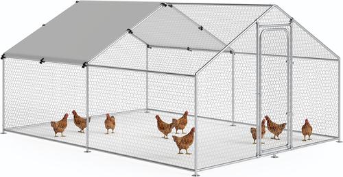 Xbrigh Metal Coop Walk-in Spire Roof Poultry Cage with Waterproof & UV-Resistant Cover, Silver, 13.2 x 10 x 6.4-in