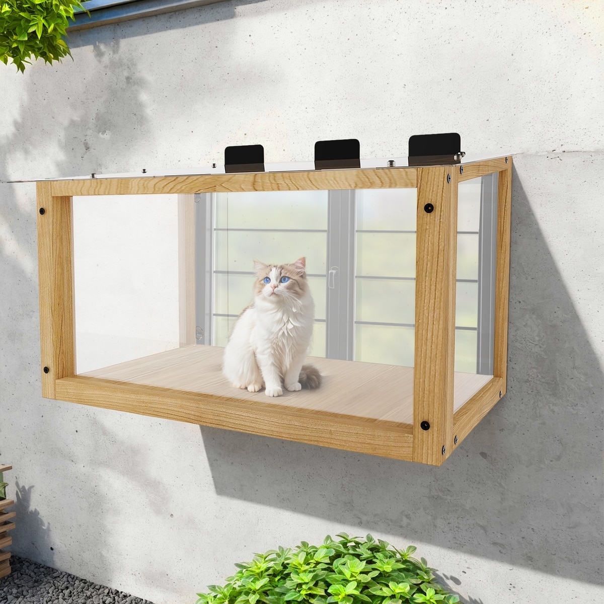 Yafylly Catio Waterproof Cat Window Perch Catio, Cat Window Box with Bug-Resistant Mesh, Natural, Small