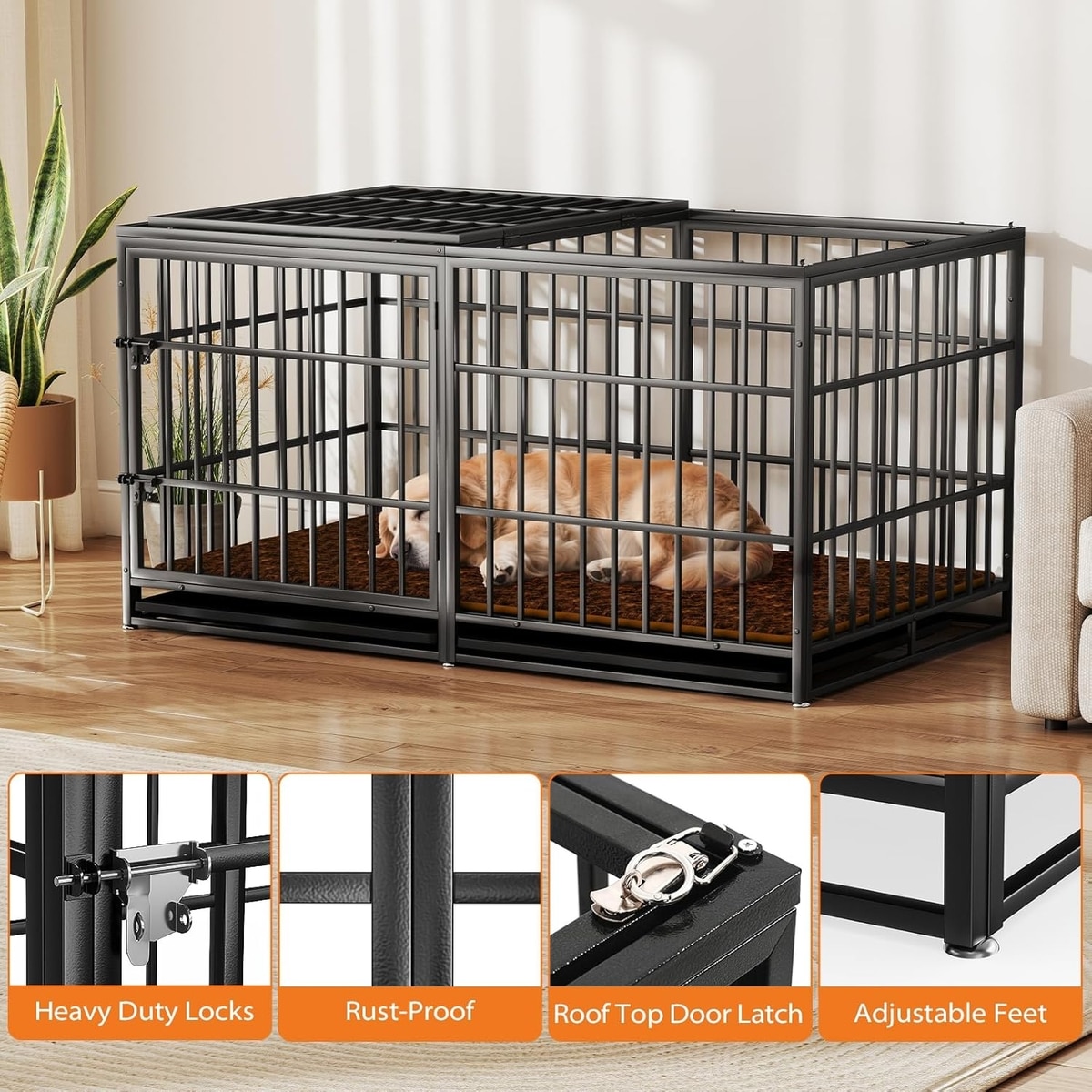 Yafylly Heavy Duty Double Door Dog Crate with 2 Removable Pans, Black, X-Large: 61 inch