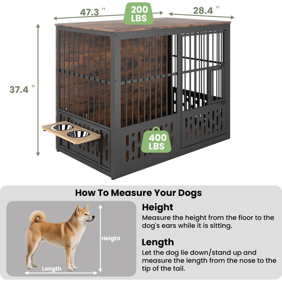 Yafylly Indoor Heavy Duty Double Door Dog Crate, Large, Rustic Brown