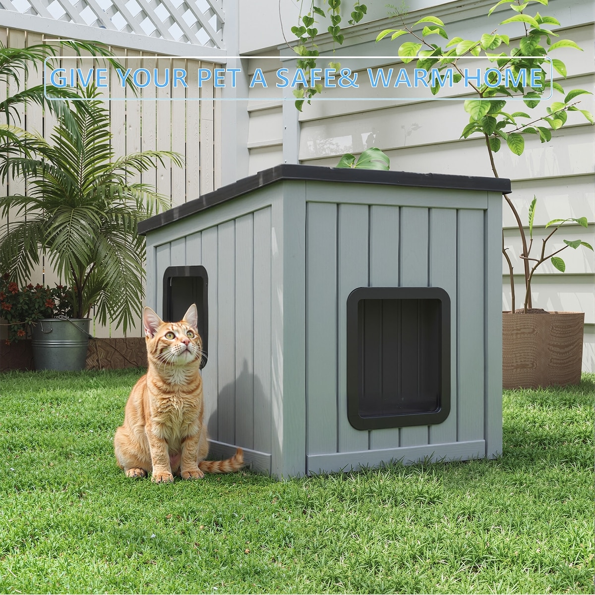 Yafylly Outdoor Sloped Roof Cat House, Gray-Black