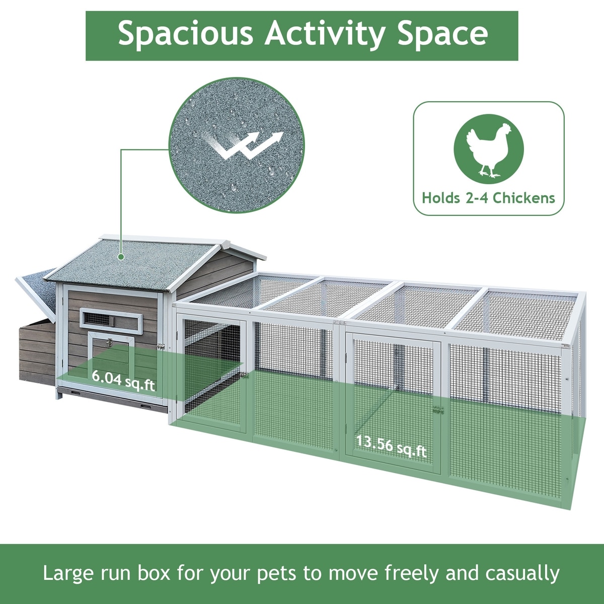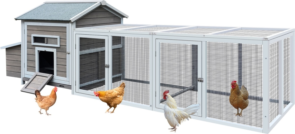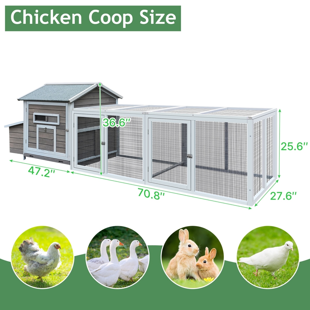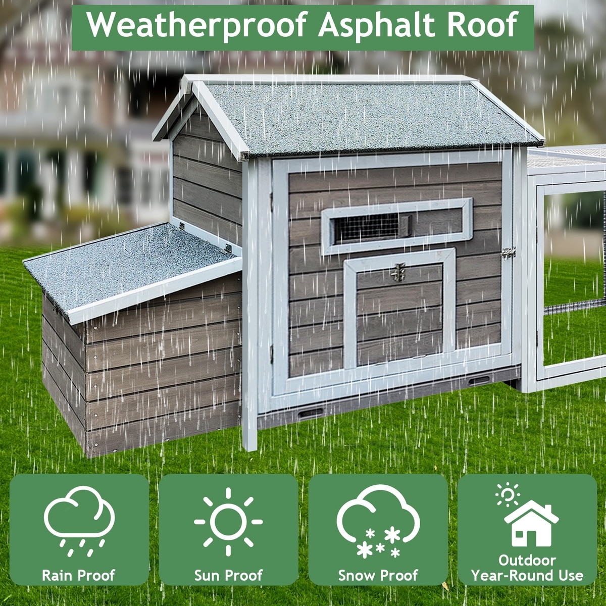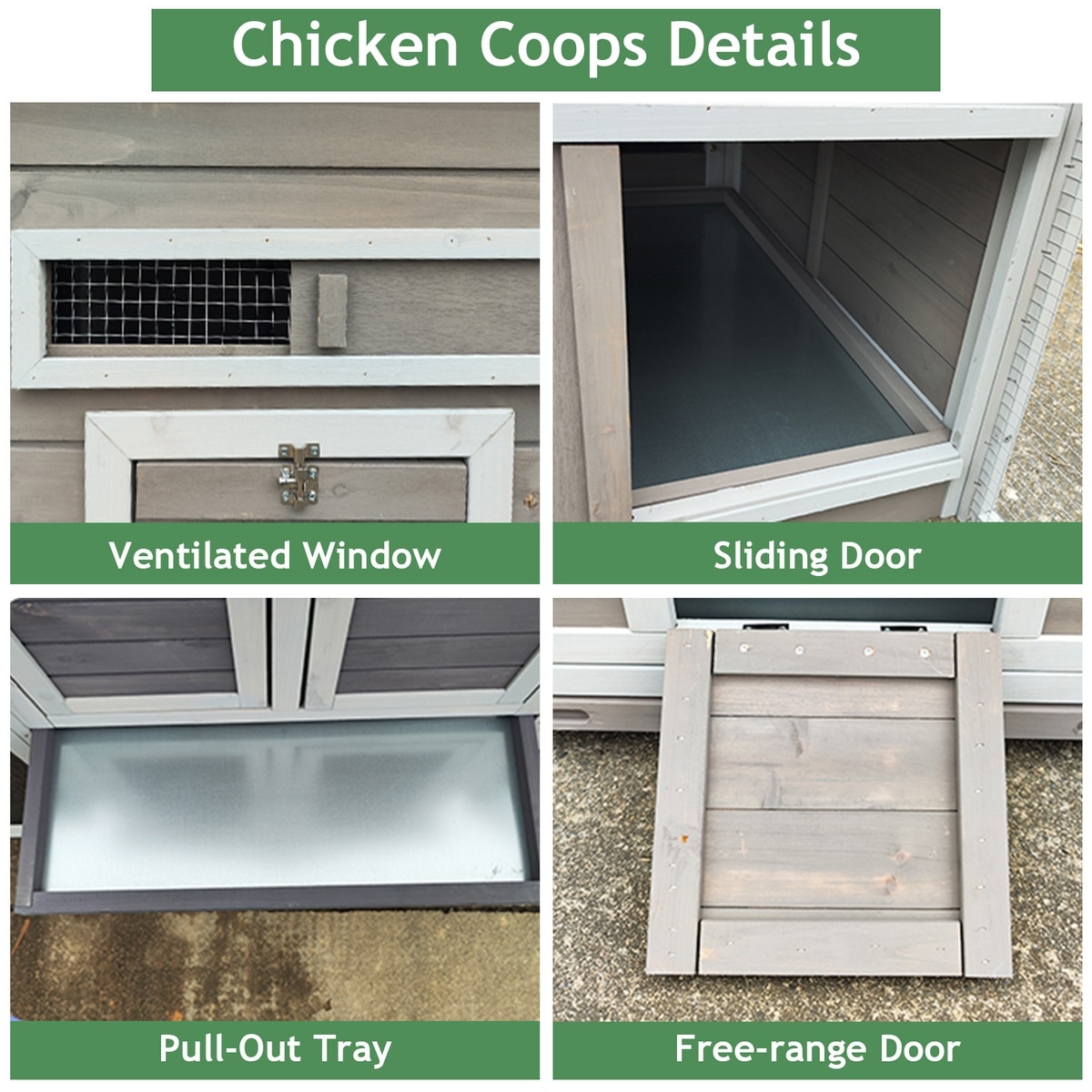 Yafylly Outdoor Wooden Chicken Coop with Nesting Box, Large: 118-in, Gray