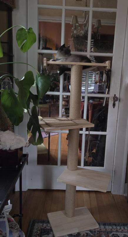 - With climbing posts, resting platforms, and a scratching column, this tree meets all your purring pal’s activity needs.