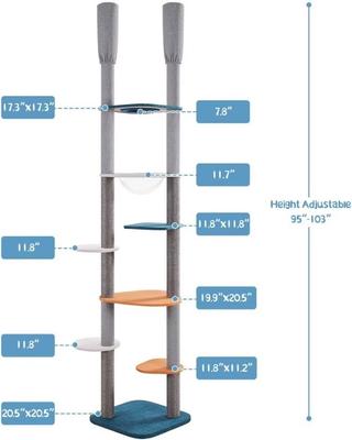 Yaheetech 103-in Adjustable Floor-to-Ceiling Cat Tree, Blue/Orange