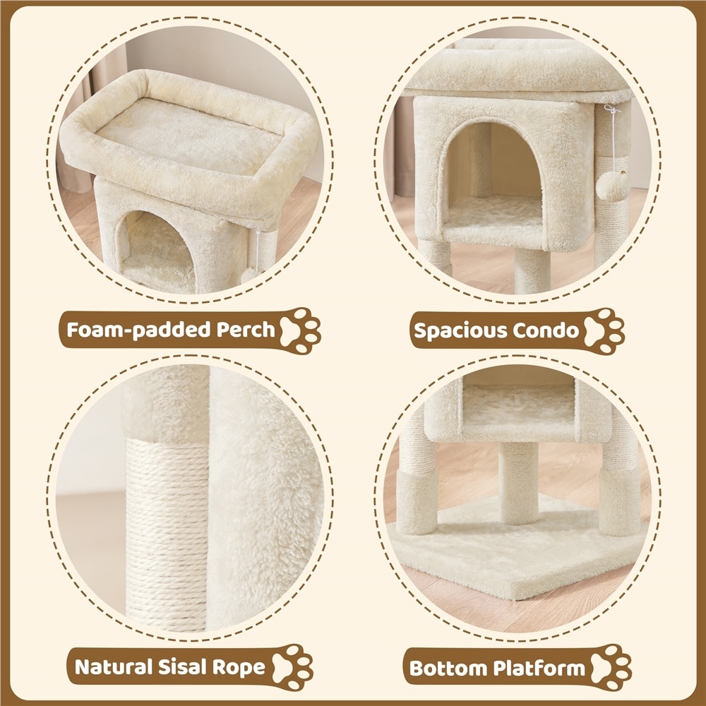 Made with particleboard and a sturdy structure, this cat tree can hold up to 11 pounds on the condo and top perch.