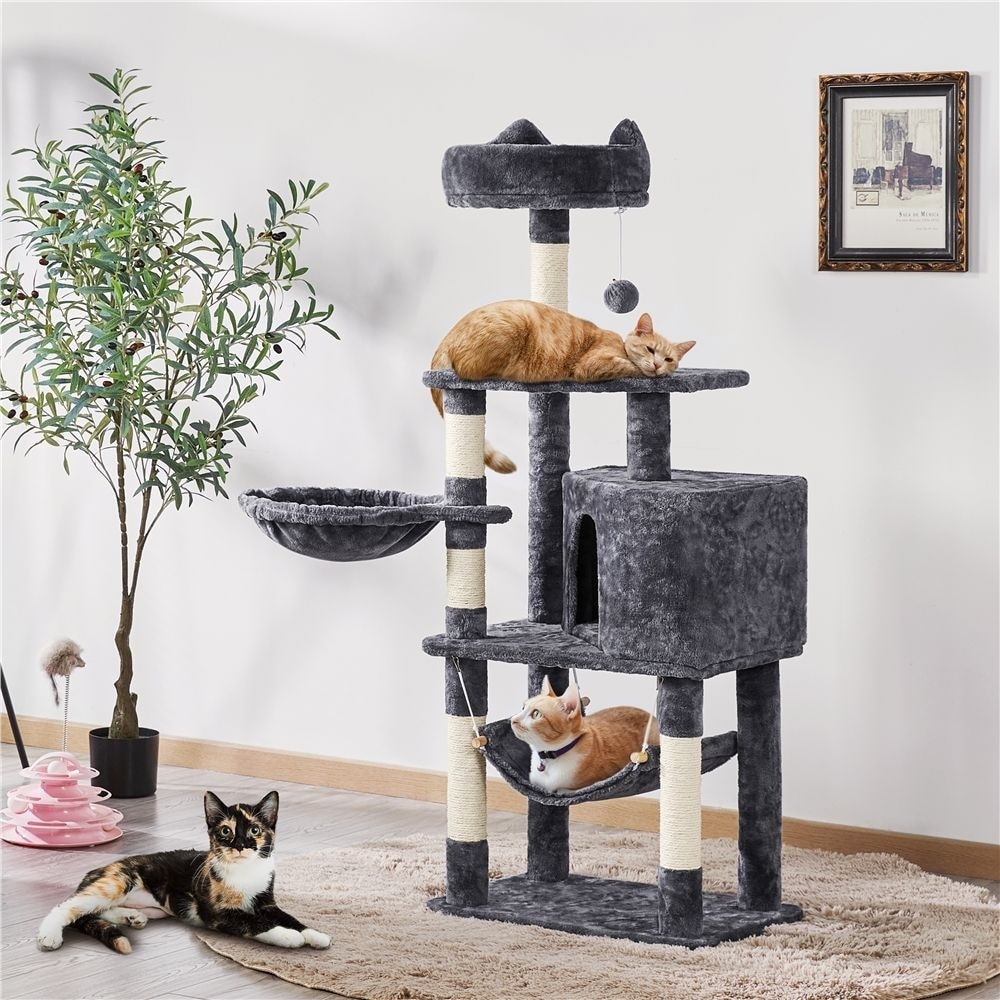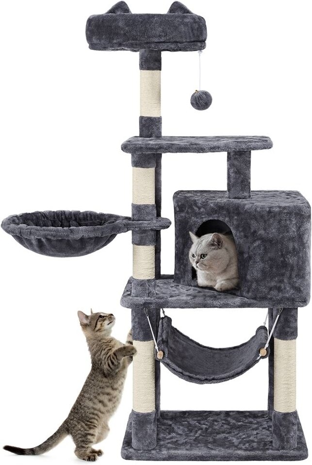 The Yaheetech cat tree condo is the perfect piece of furniture for families with multiple cats. With a durable, multi-tiered design, it gives your cats a safe place to play and lounge, providing hours of entertainment. The top perches offer the perfect spots for resting and looking outside, while the enclosed condos are great for hide-and-seek. Sisal rope scratching posts help develop positive scratching behaviors, too. Whether your cats want to play, sleep or exercise, this cat tree has it all!