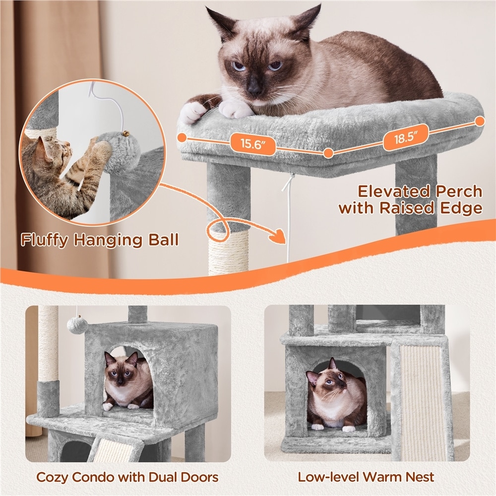 Yaheetech 3 Tiers 36-in Plush Cat Tower with Double Cat Condo, Light Gray