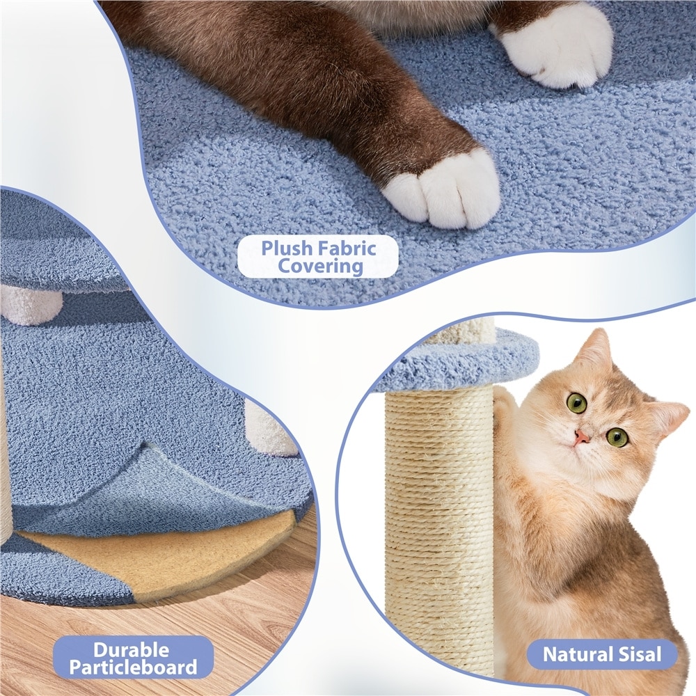 Handmade natural sisal rope is coiled around the scratching posts to create an attractive place for your kitty to sharpen her claws. Posts at different heights help encourage positive scratching behaviors, redirecting clawing to help keep your fine furniture safe from damage.