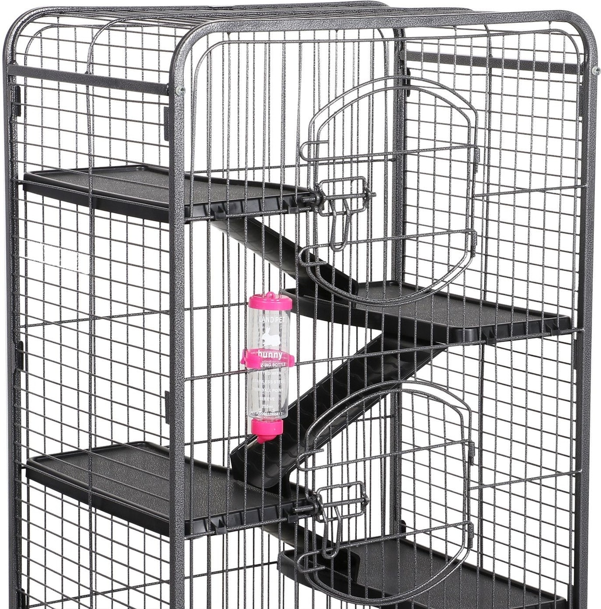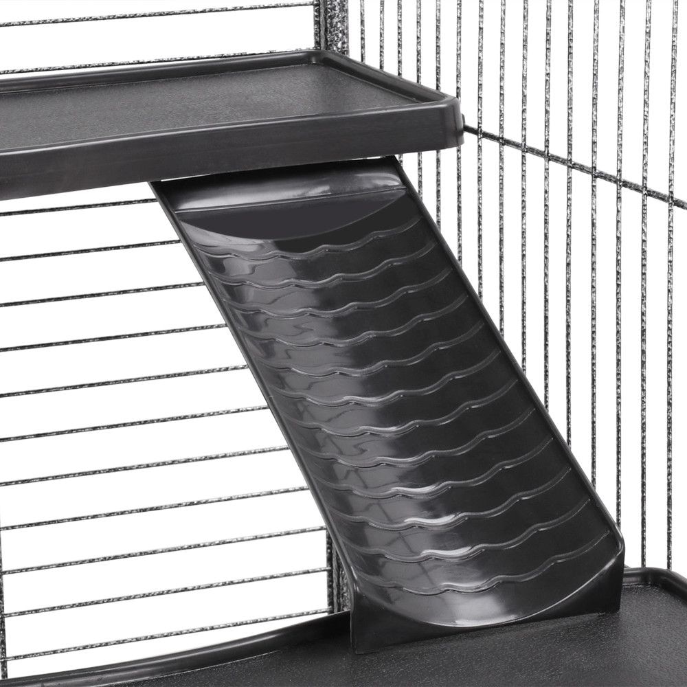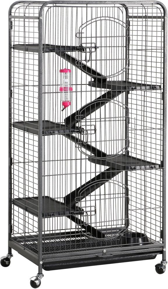 Good cage gives the rats lots of room and levels to run around. Putting it together was a pain in the butt parts don’t fully fit as they should and need to be bent into place definitely recommend having two people to put it together