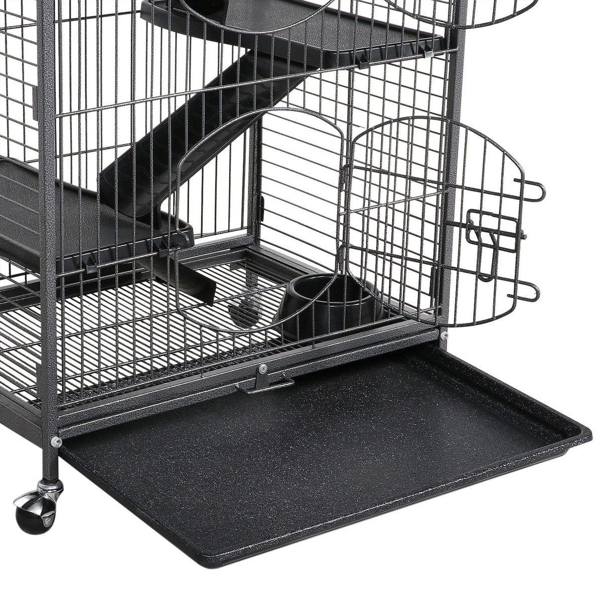 I just got the product in today and the box was in rough shape. The top of the cage was warped and almost impossible to put on and the food bowl was broken and there was broken plastic all in the box. The ramps are very slick and not easy for my ferrets to walk on. For the price I’m not happy and I don’t recommend for other pet owners. Keep looking for a different cage.