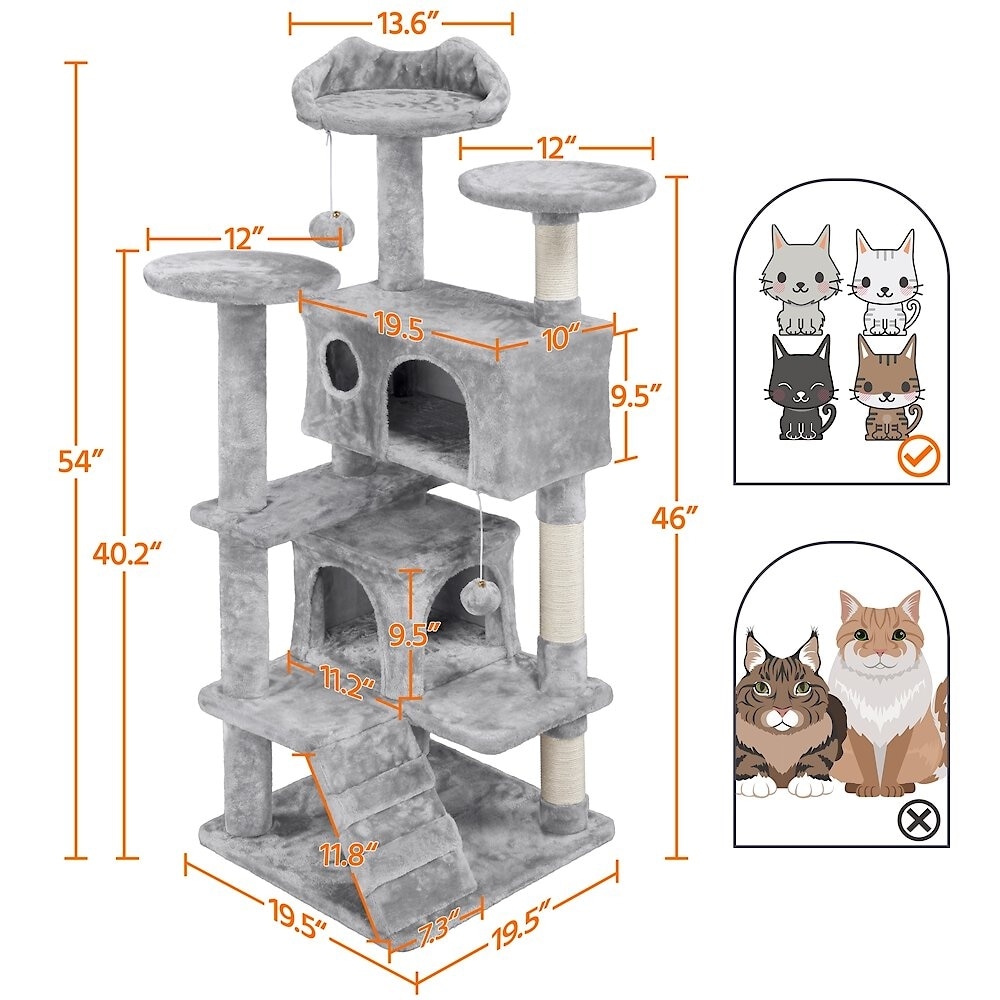 Yaheetech 54.5" H Multilevel Indoor Cat Tree & Condo, Light Gray