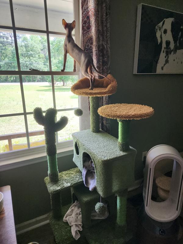 Yaheetech 54.5-in Cactus Cat Tree, Medium, Green & Brown