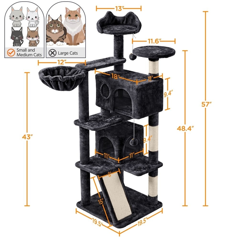 Yaheetech 57-in Plush Cat Tree & Condo, Black
