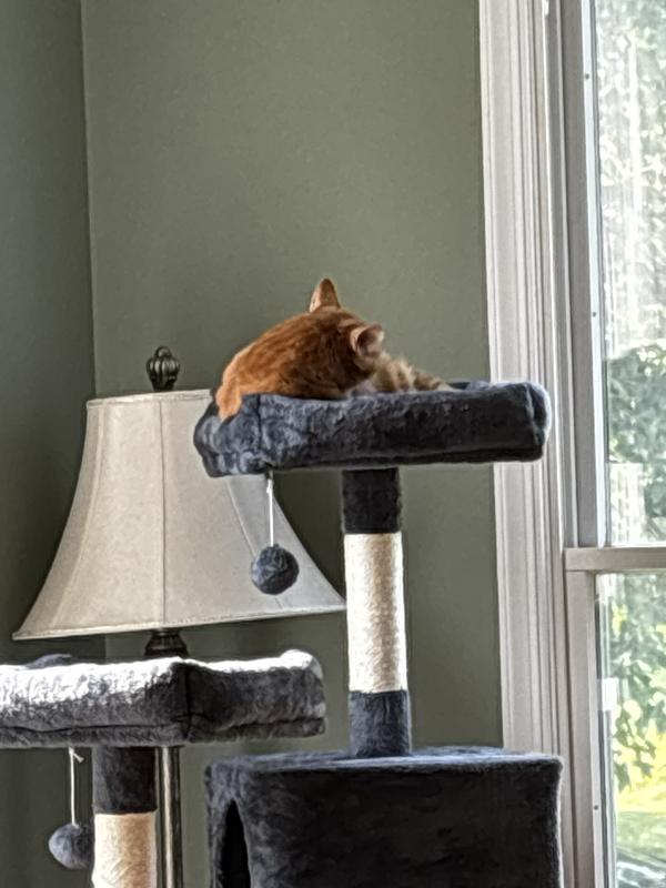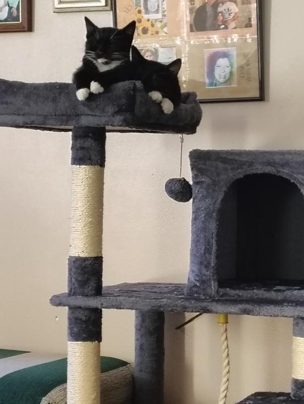 This cat tree is recommended for families with 2-3 medium/large cats.