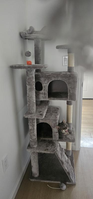 Yaheetech Cat Scratching Tree, 61.5-in, Light Gray