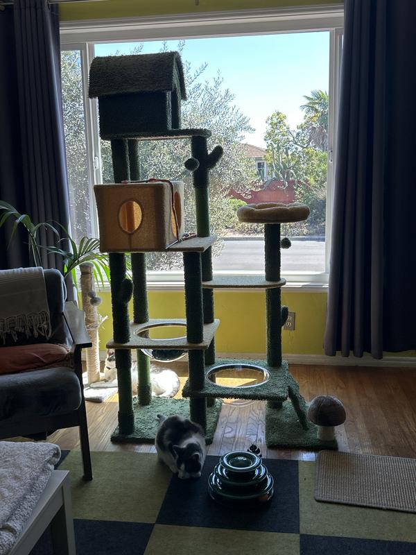 Yaheetech 68.5-in Oasis-Themed Cat Tree, Green/Yellow