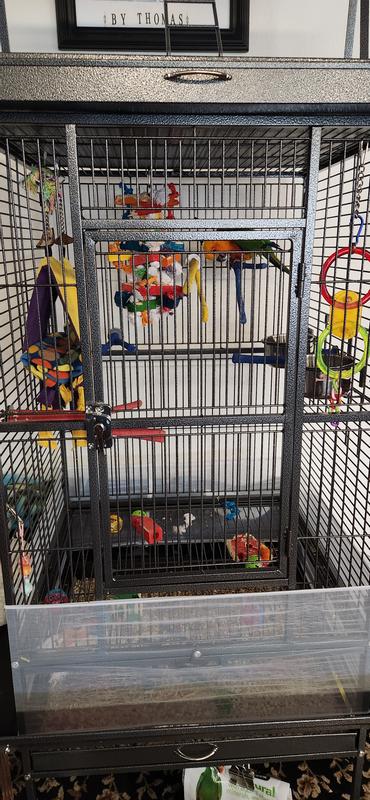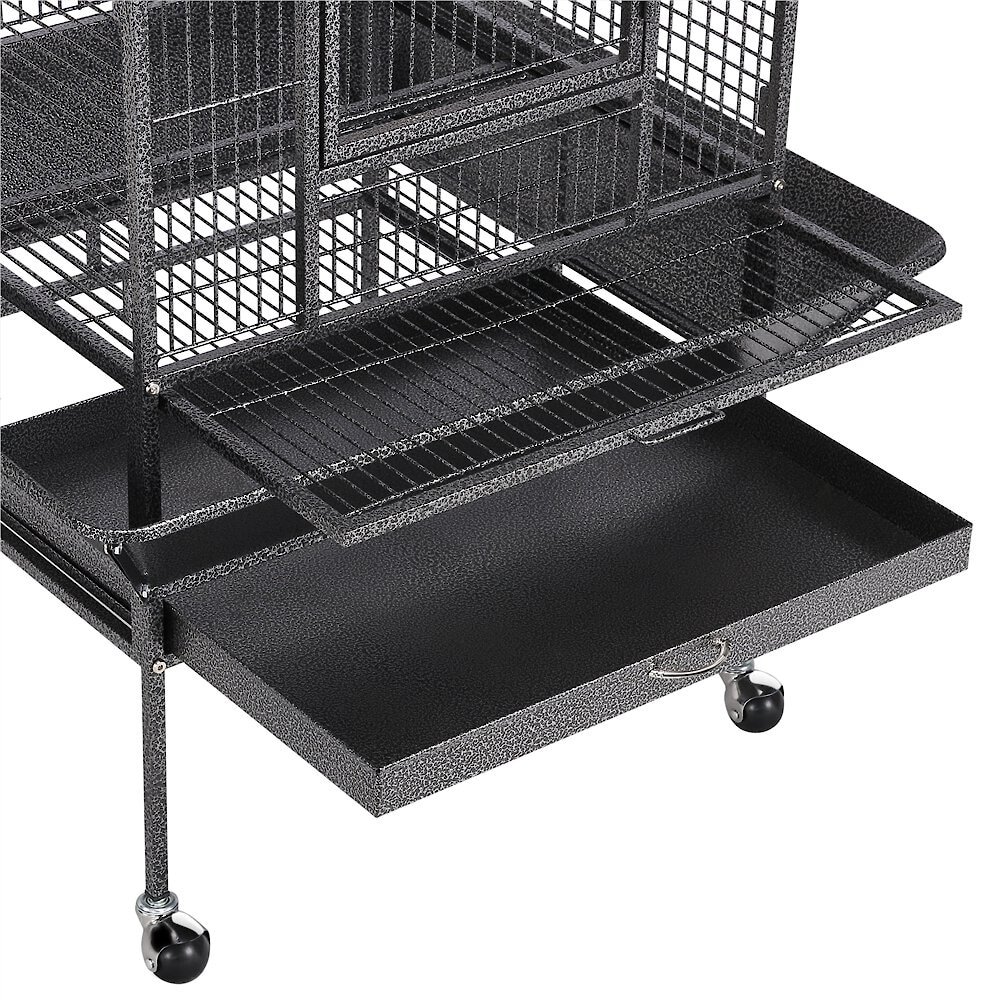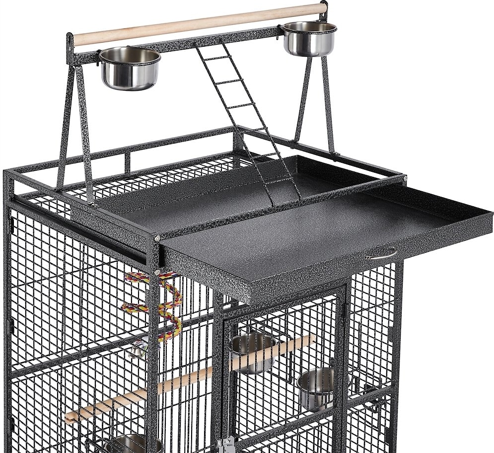 Yaheetech 68.5-in Rolling Bird Cage & Playtop, Hammertone Black