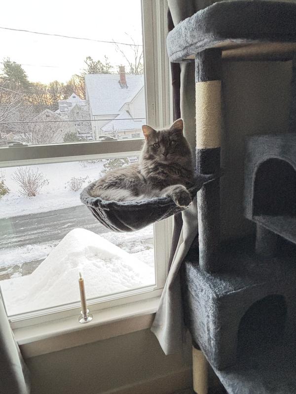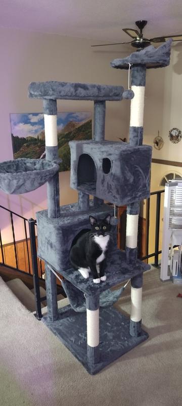 This tree is suitable for around three small cats or two normally-sized cats, but not ideal for large-sized cats.