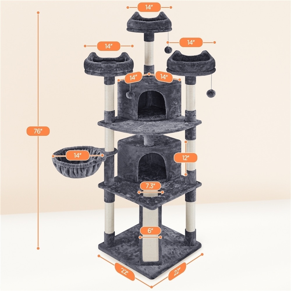 Yaheetech 76-in Multi-Level Cat Tree, Dark Gray