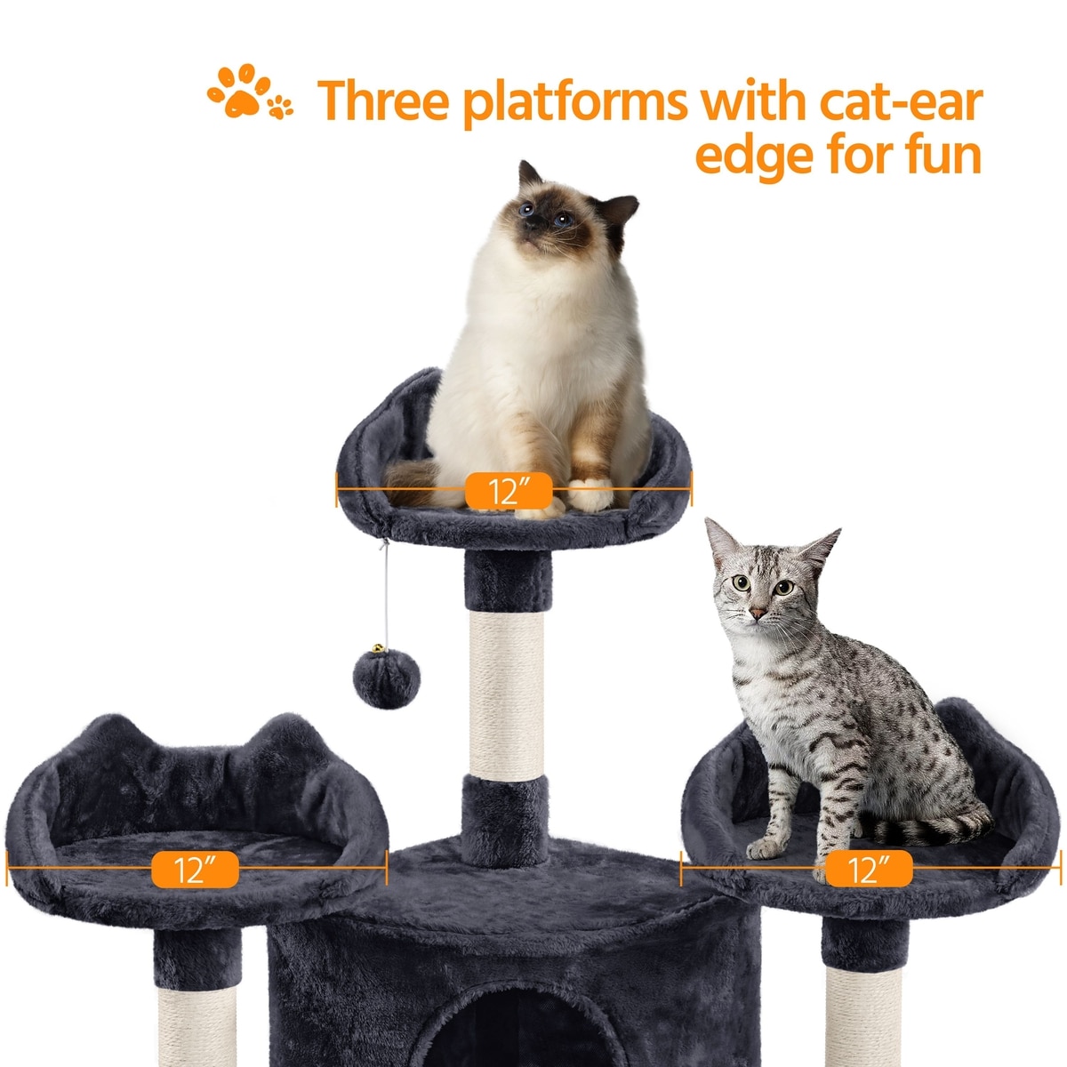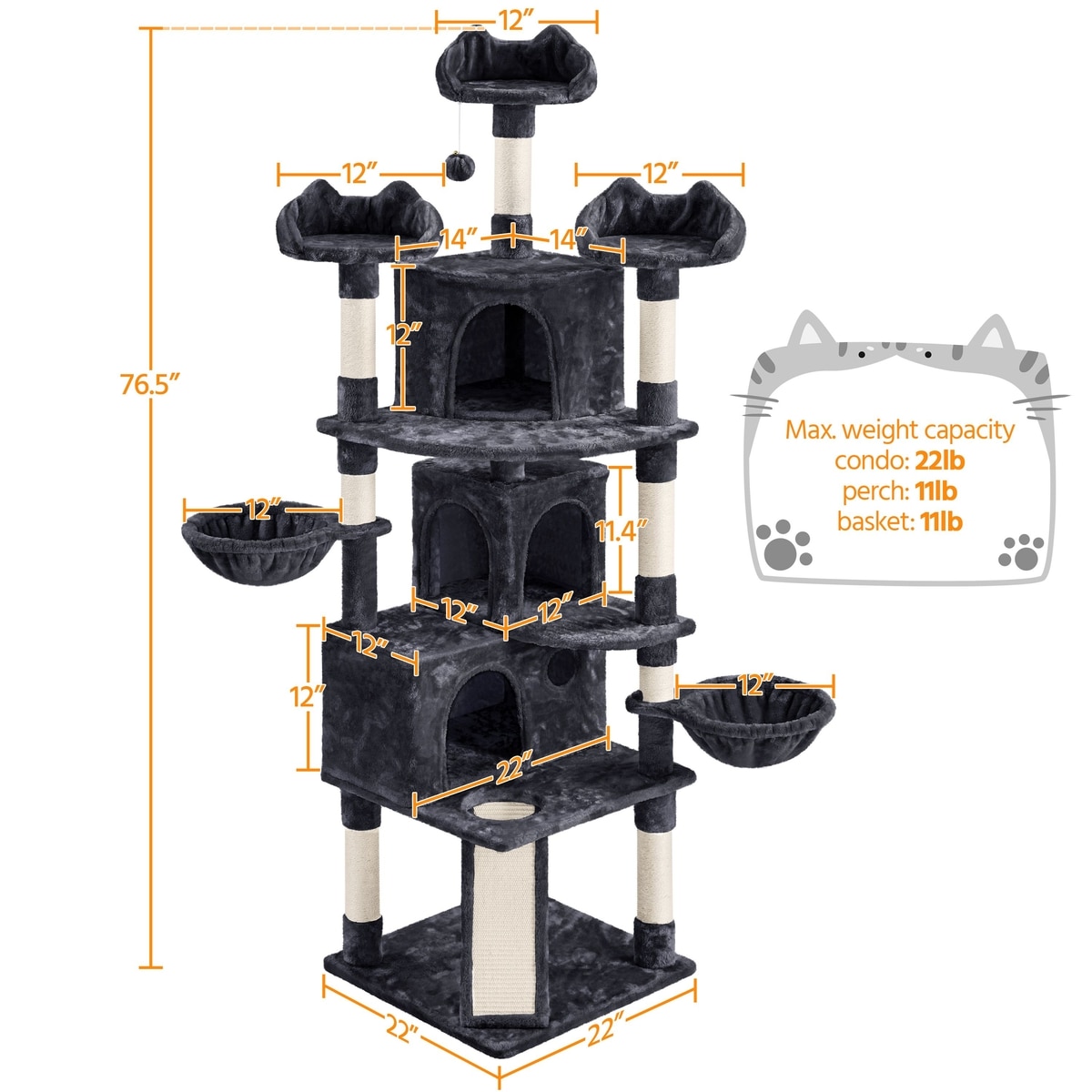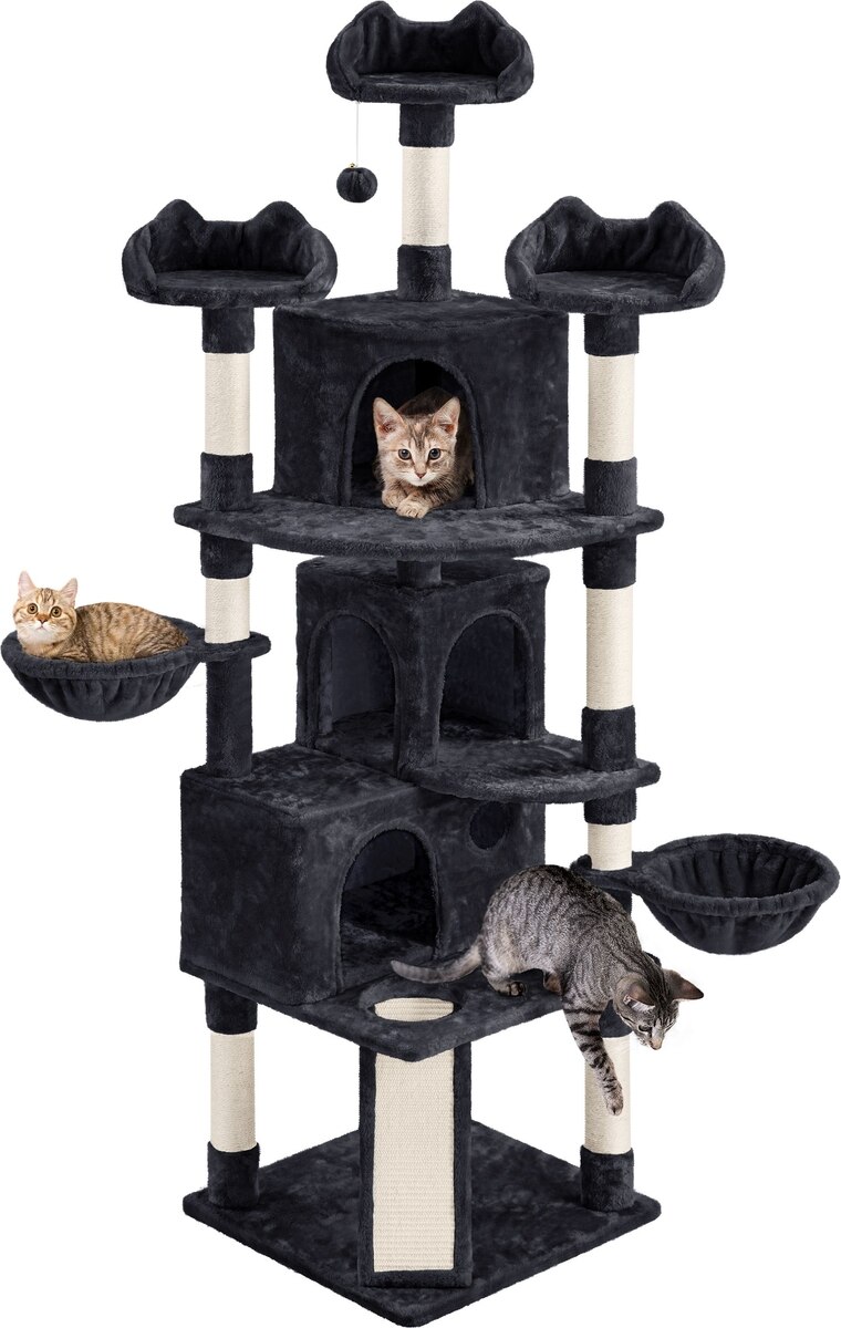 Yaheetech 76.5-in Tree with 3 Condos Cat Tree, Large, Black