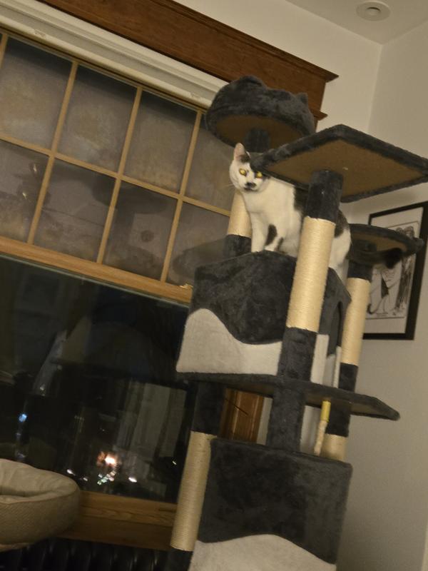 Yaheetech 79-in Plush Cat Tree & Condo, Dark Gray/White