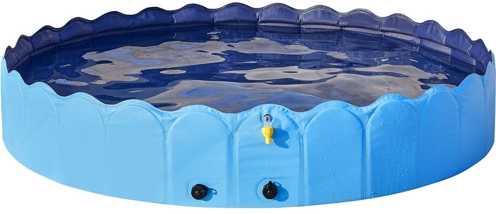 My golden retriever loves water so of course she loved it. It was hard to set up to get all of the wrinkles out of the bottom. When the sprinklers were used the sides of the pool had a tendency to lean in toward the center instead of staying upright. Because of the wrinkles, she was able to grab the bottom and tear it, so now I have a piece of junk. Very disappointing since it’s not even summer yet. Maybe if you have small dogs that like water it would be fine, but it did not work for me.